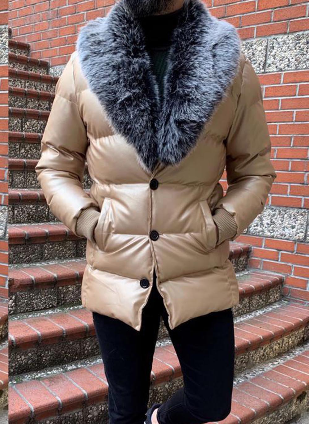 Geaca de barbati cu blana la guler, crem – model 2020 – cod: GC316