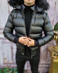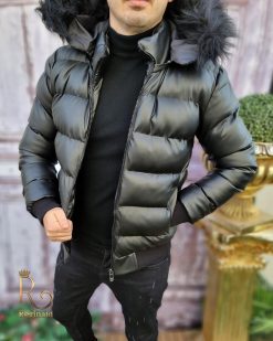 Geaca de barbati, groasa, neagra, cu blana la gluga cod: GC668