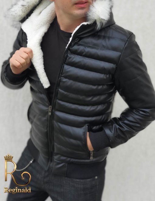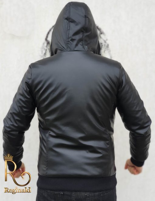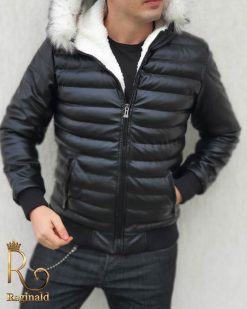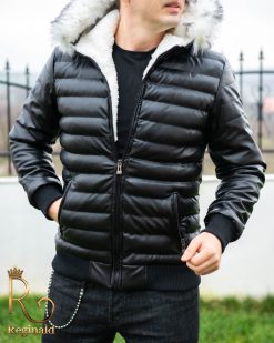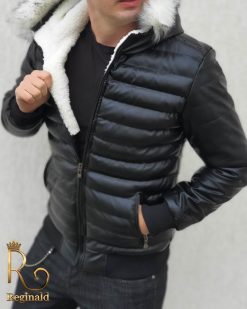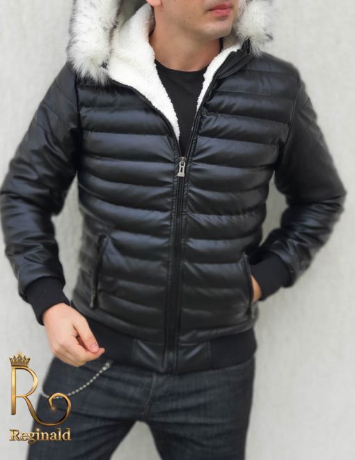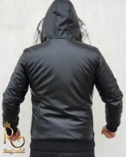 Geaca groasa de barbati slim fit cu fermoar metalic si blana la gluga