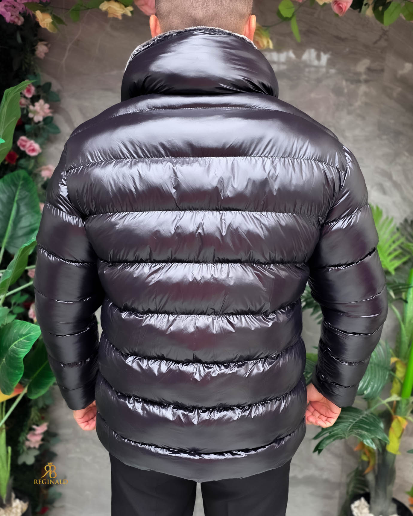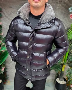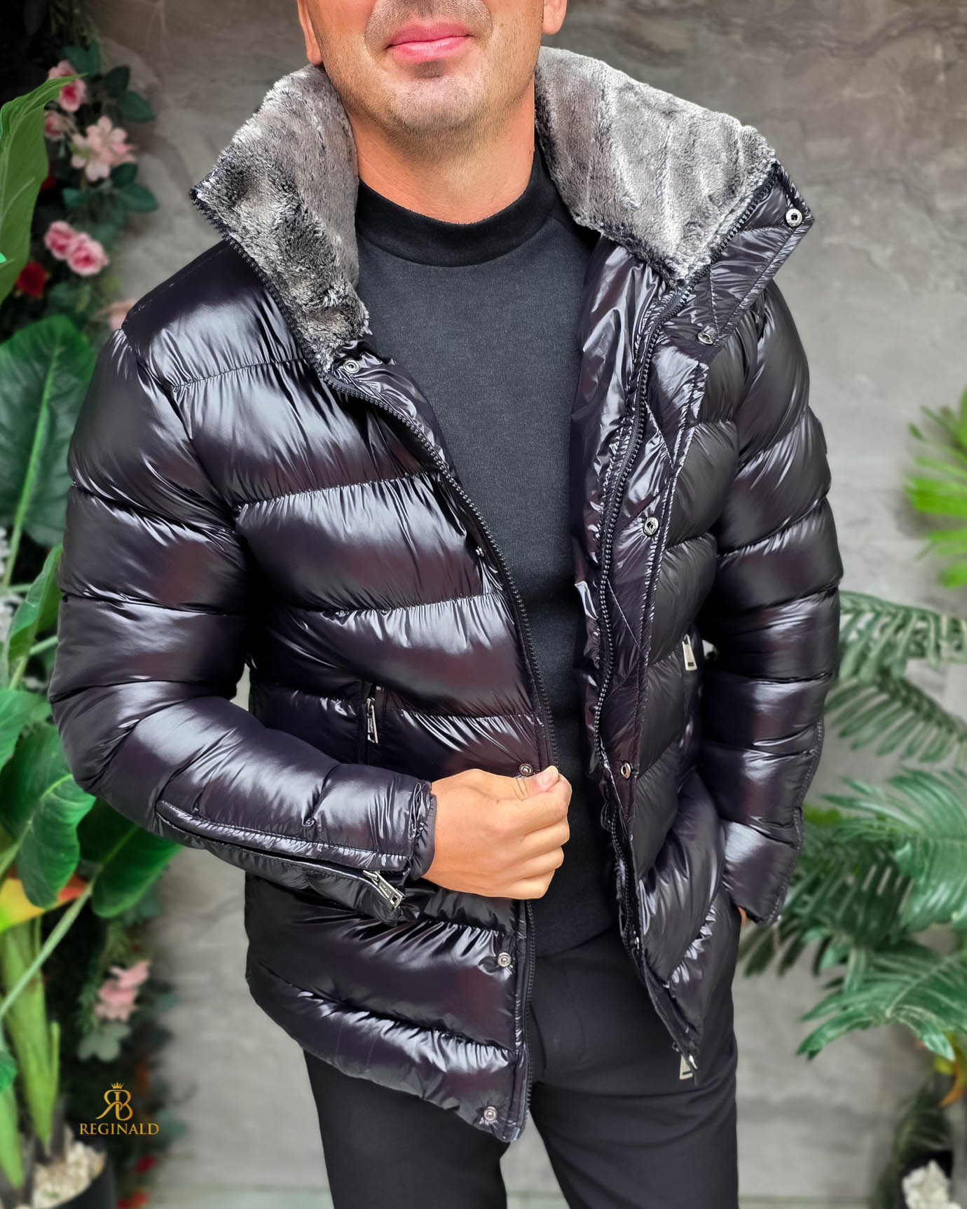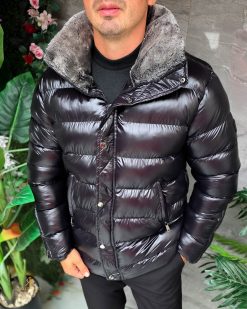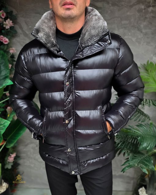Geaca de bărbați, neagra, groasa, cu blana la guler – GC877