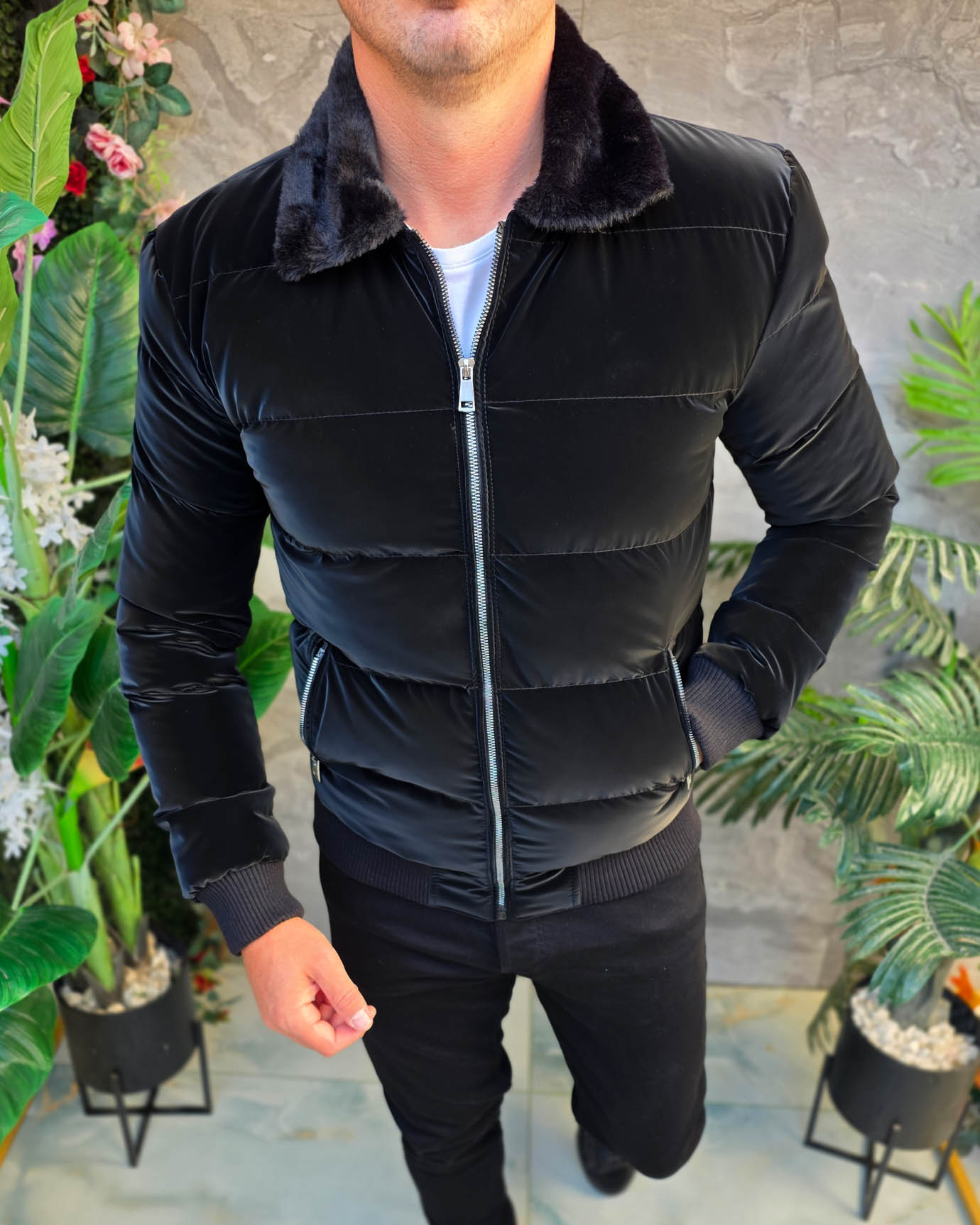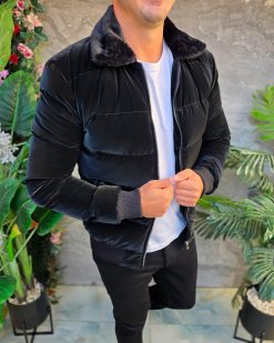 Lanț metalic pentru sacou, Auriu cu piatra neagra- LT356