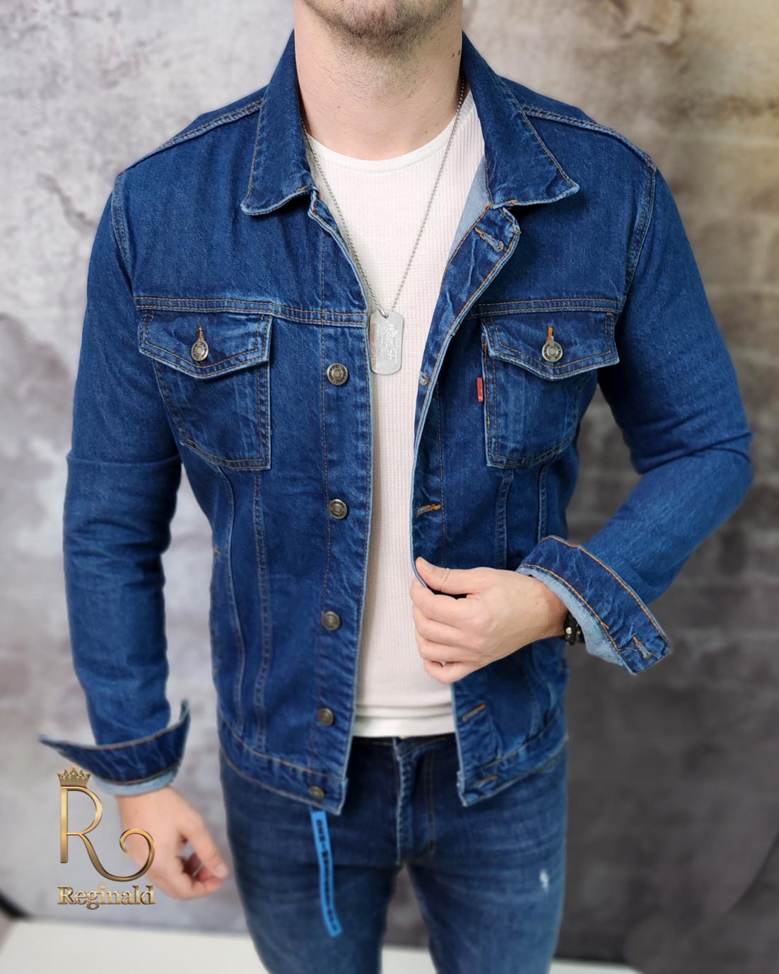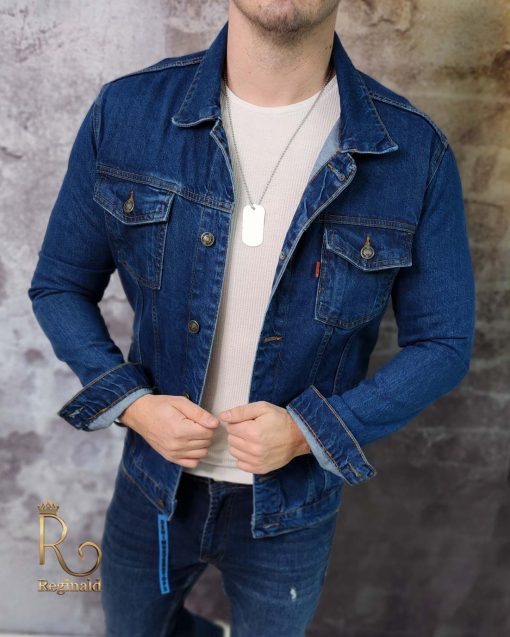Această geacă de blugi este special concepută pentru bărbați și are o croială Slim Fit, ceea ce înseamnă că se va mula frumos pe corpul tău. Culoarea albastră este una clasică și versatilă, potrivită pentru a fi purtată în diferite ocazii.