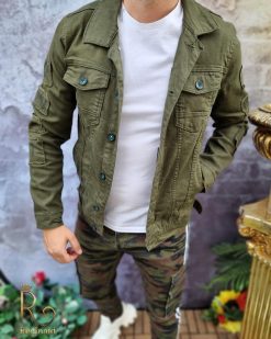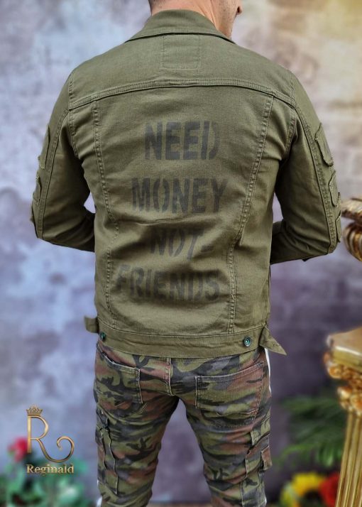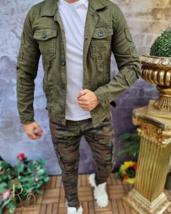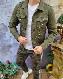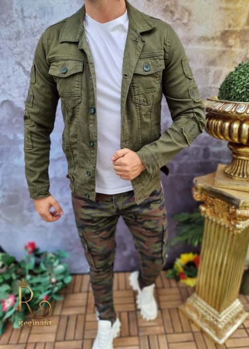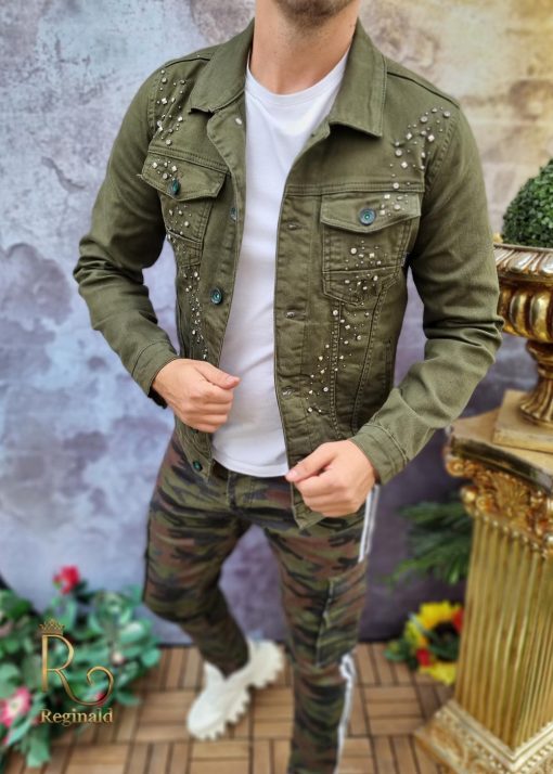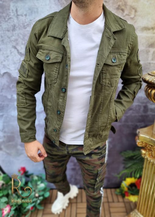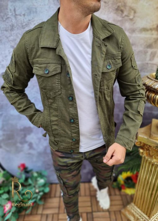 Geaca de blug pentru barbati, Slim Fit, Verde cu imprimeuri – GB133