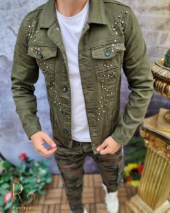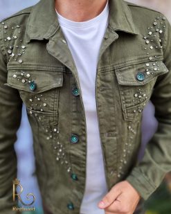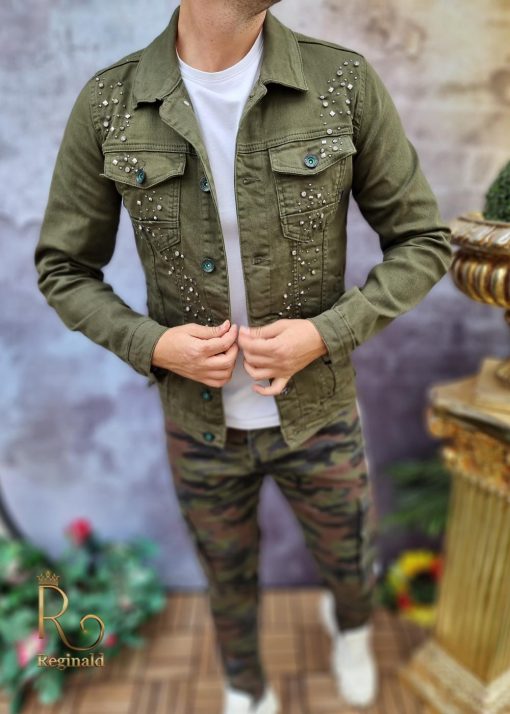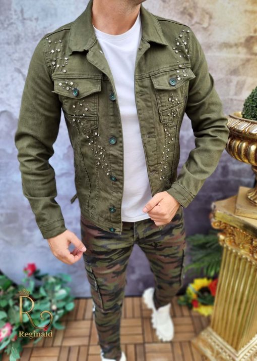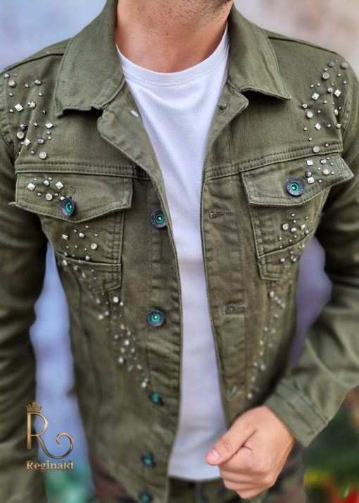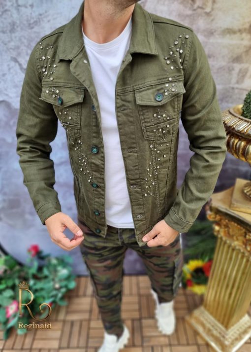 Geaca de blug pentru barbati, Slim Fit, Verde cu nasturi – GB125