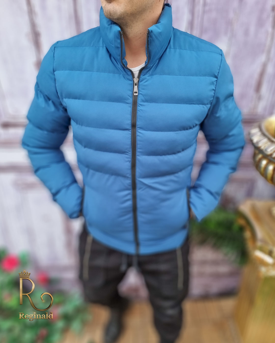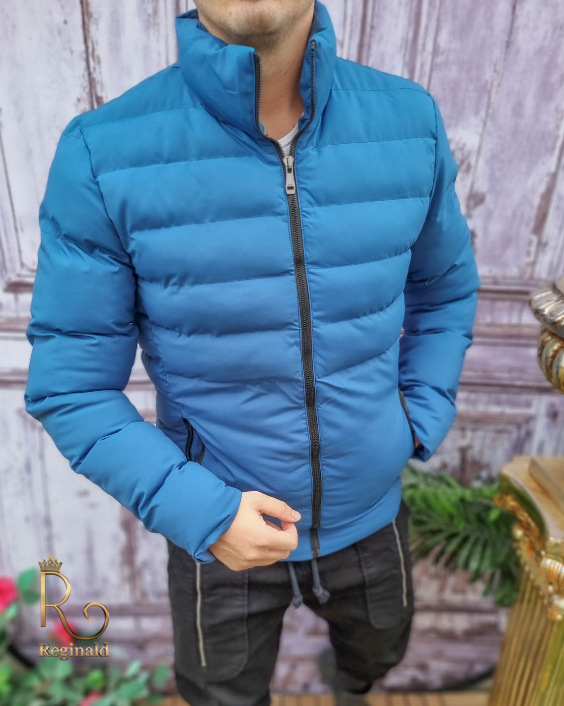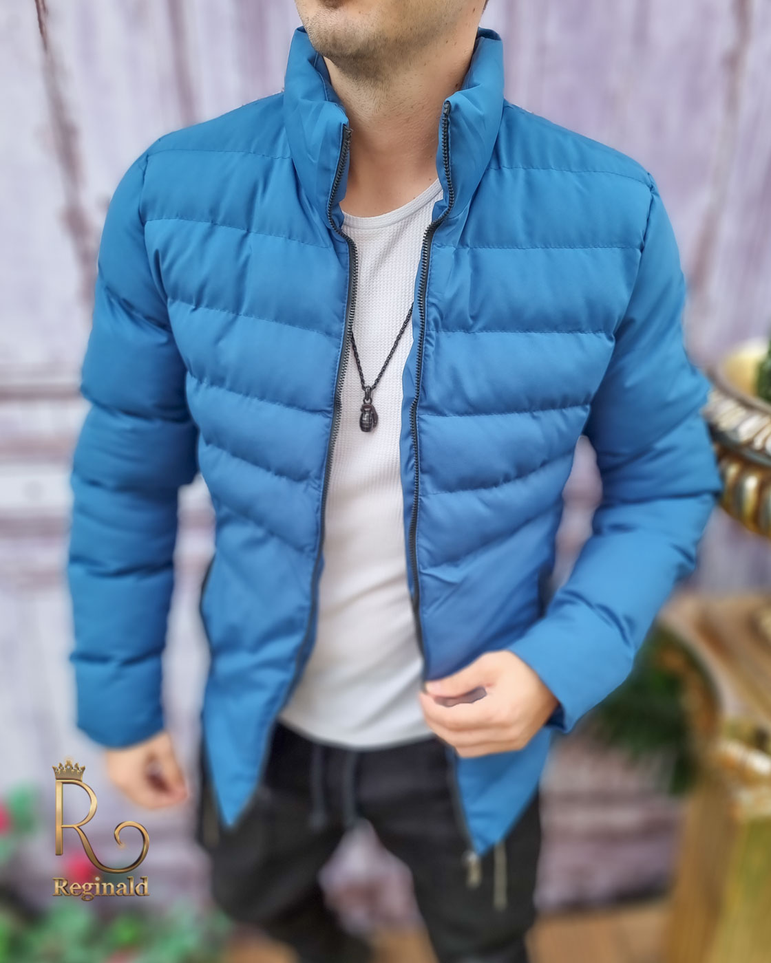 Geaca de iarna barbateasca, Albastra din fas – GC617