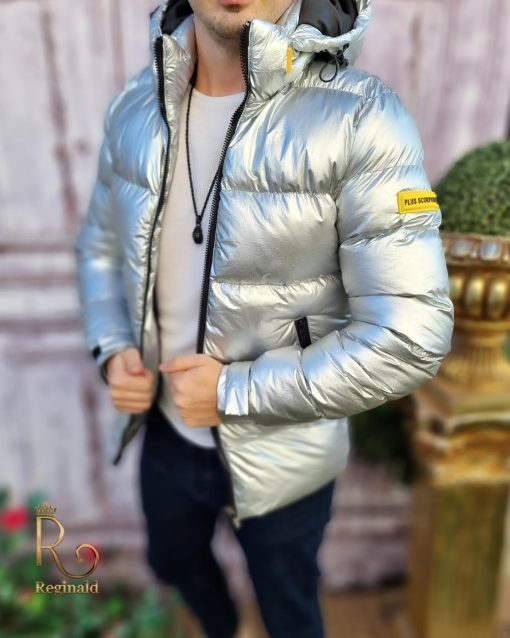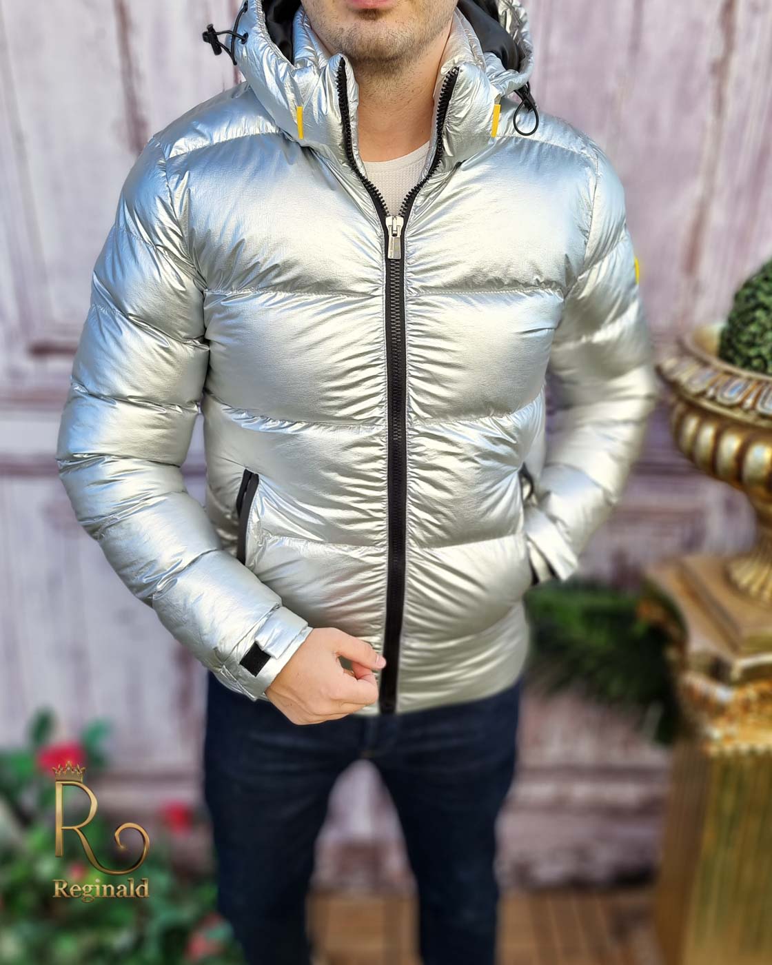 Geaca de iarna barbateasca argintie, croiala slim-fit – GC630