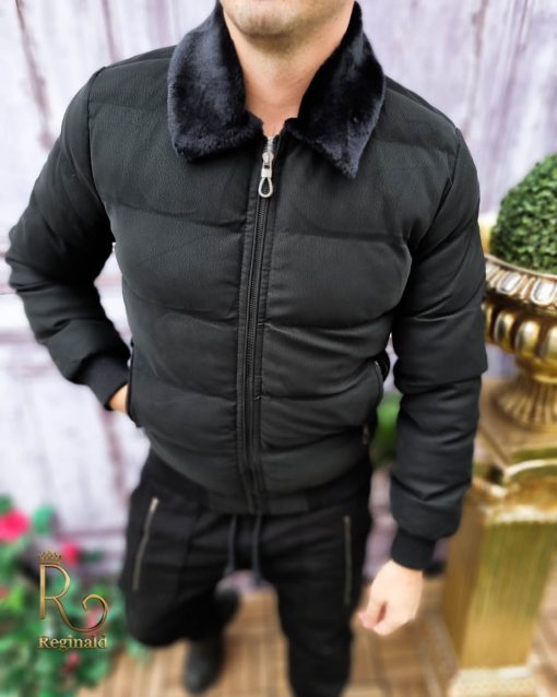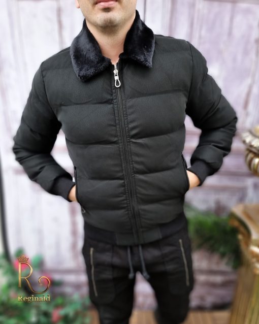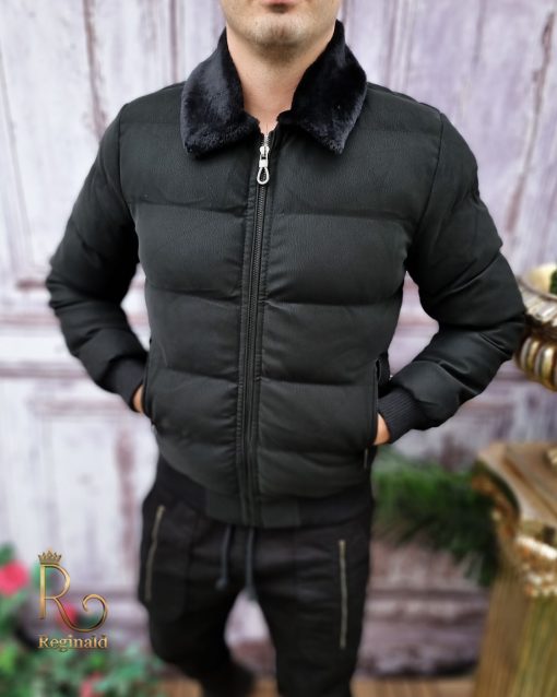 Geaca de iarna barbateasca, cu blana neagra la guler – GC624