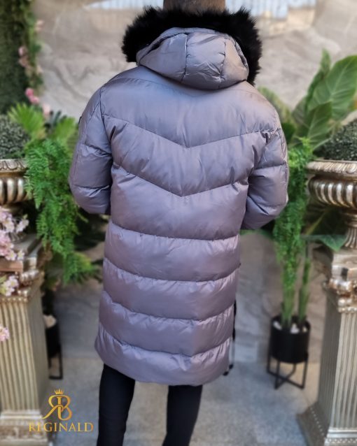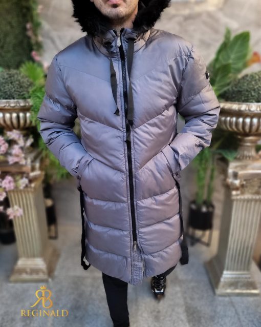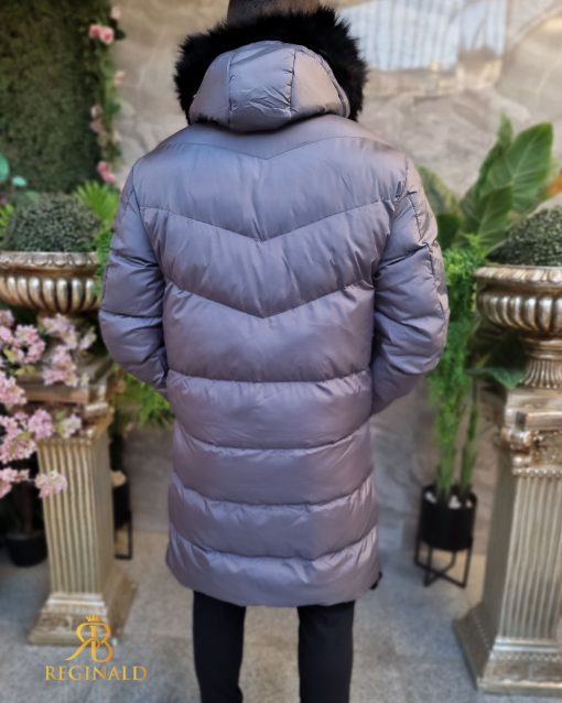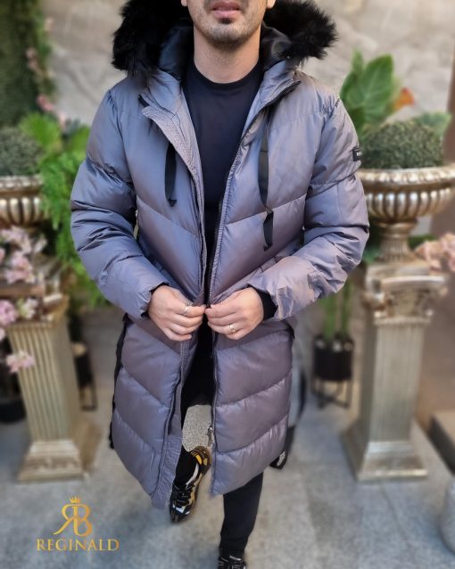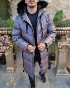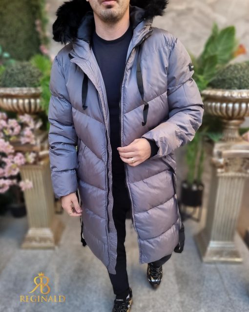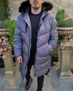Geaca gri inchis, lunga si groasa pentru barbati, cu gluga – GC812