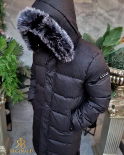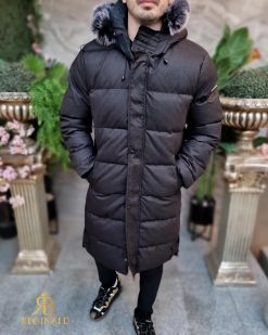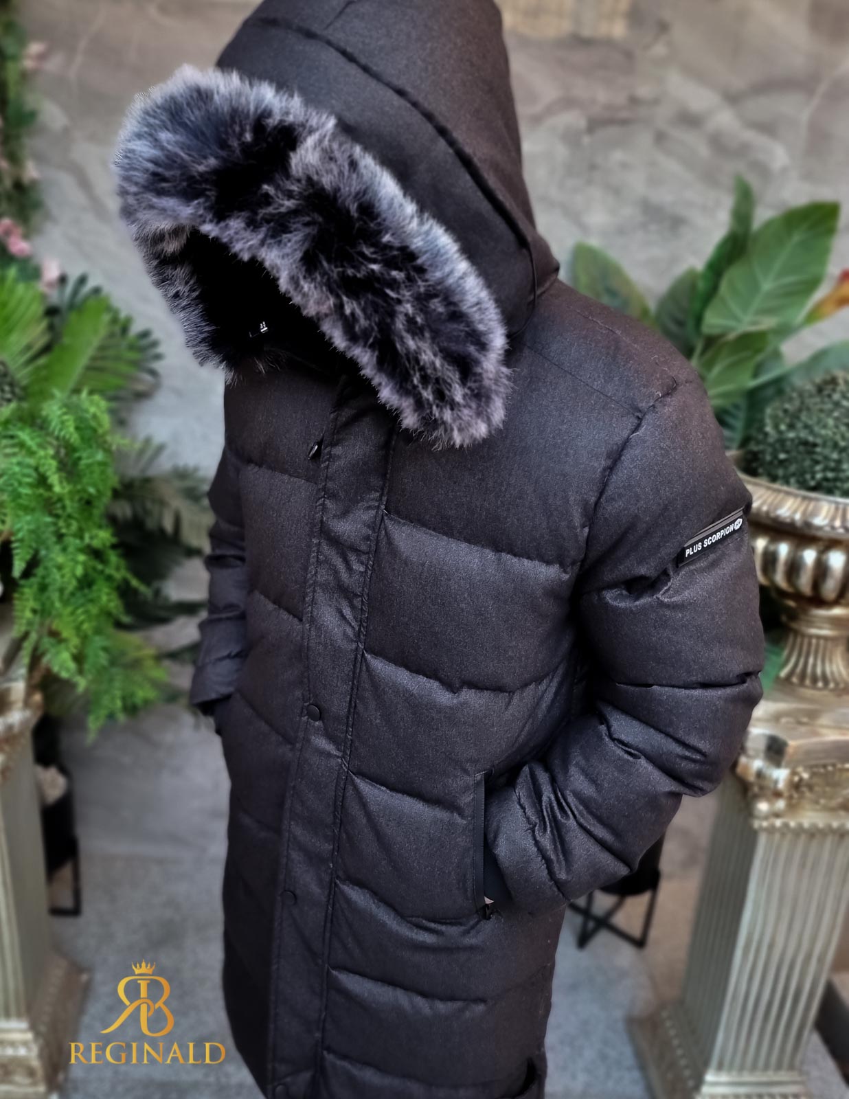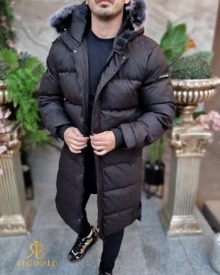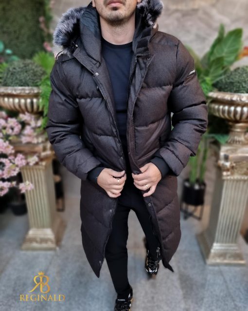 Geaca lunga si groasa pentru barbati, cu gluga, blana detasabila