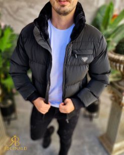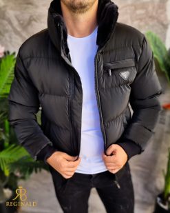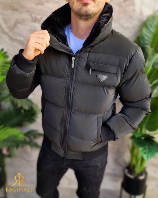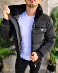 Geaca groasa de barbati slim fit cu fermoar metalic