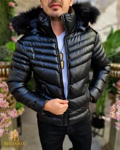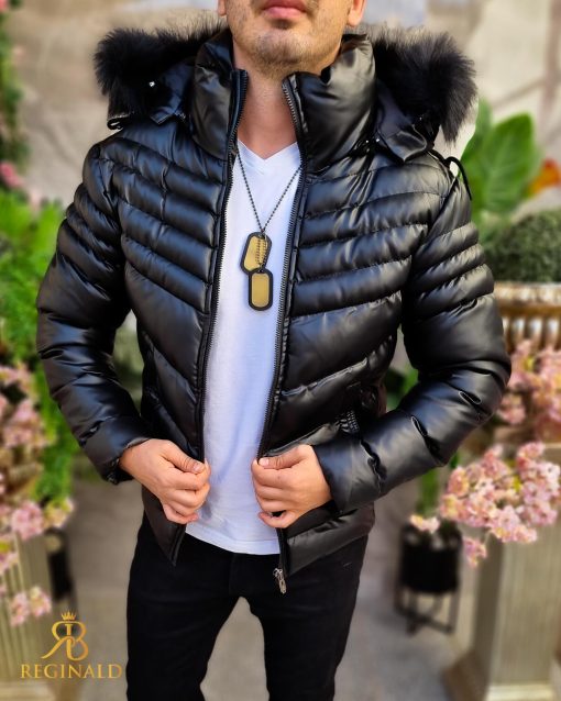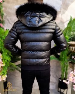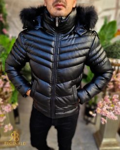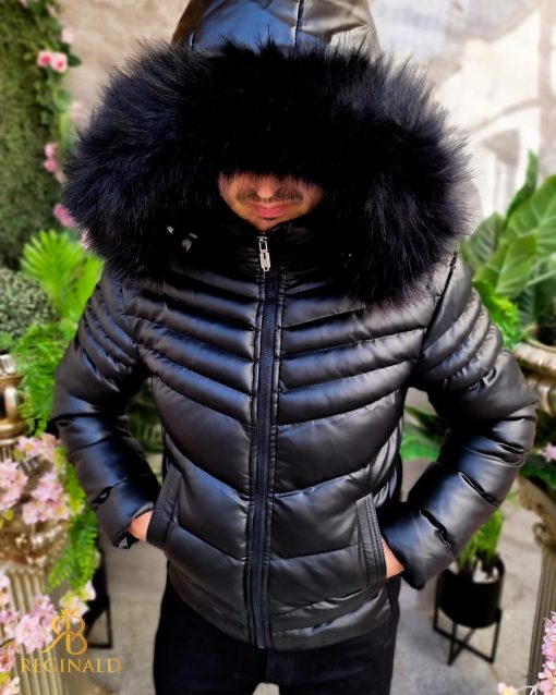 Compozitie: 100% (polyester) piele eco + blana neagra la gluga