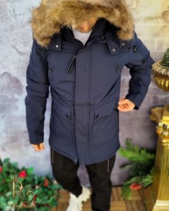Geaca imblanita de barbati, bleumarin, cu blana la gluga – colectia 2021 – GC607
