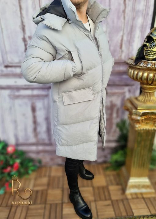 Geaca de barbati lunga, foarte groasa, croiala slim,