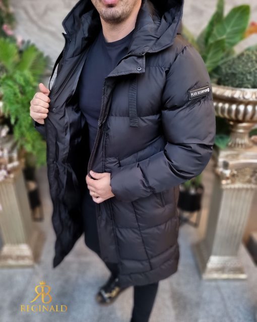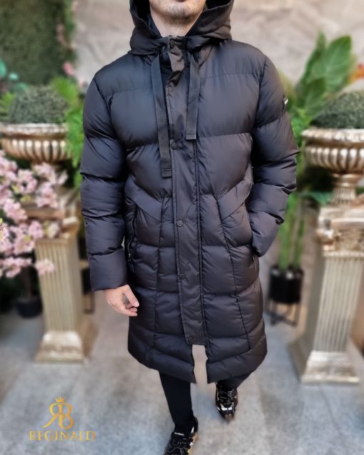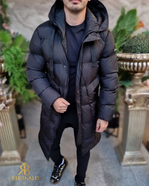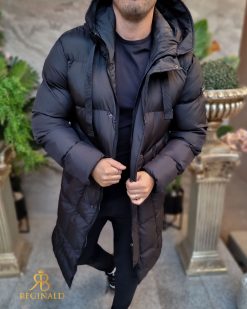 Geaca lunga si groasa pentru barbati, cu gluga, blana detasabila
