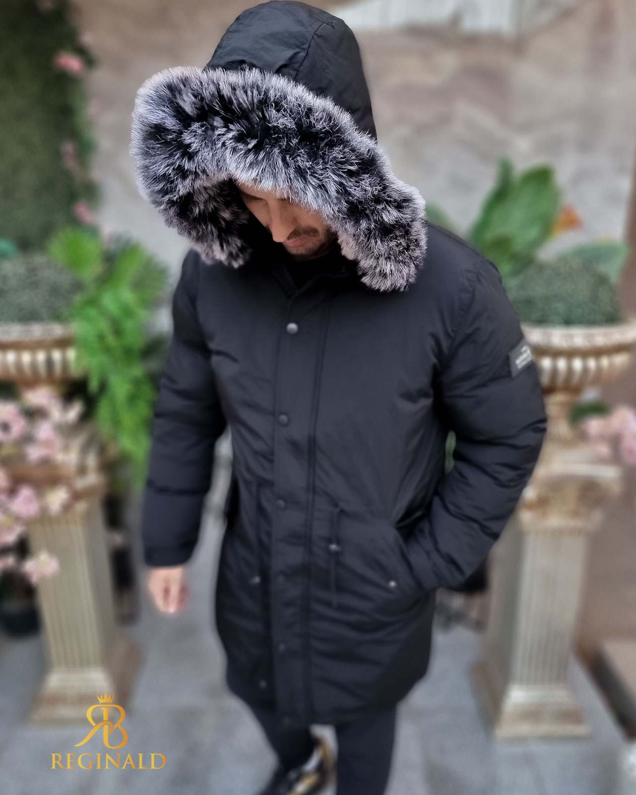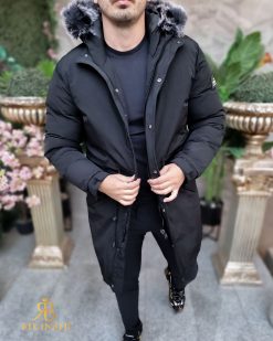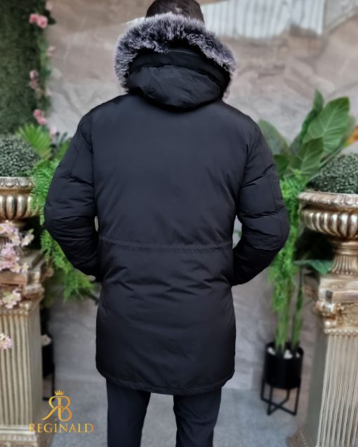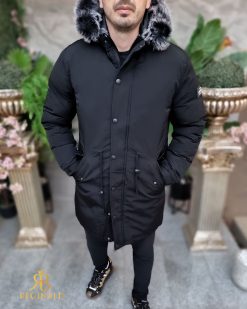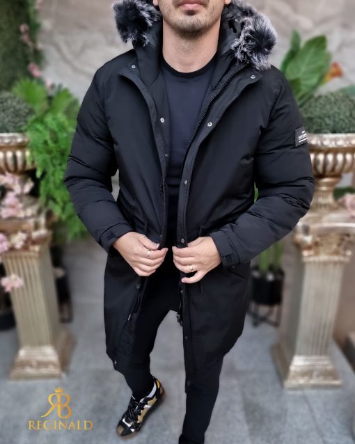 Geaca lunga si groasa pentru barbati, cu gluga, blana detasabila