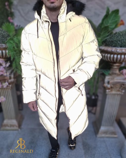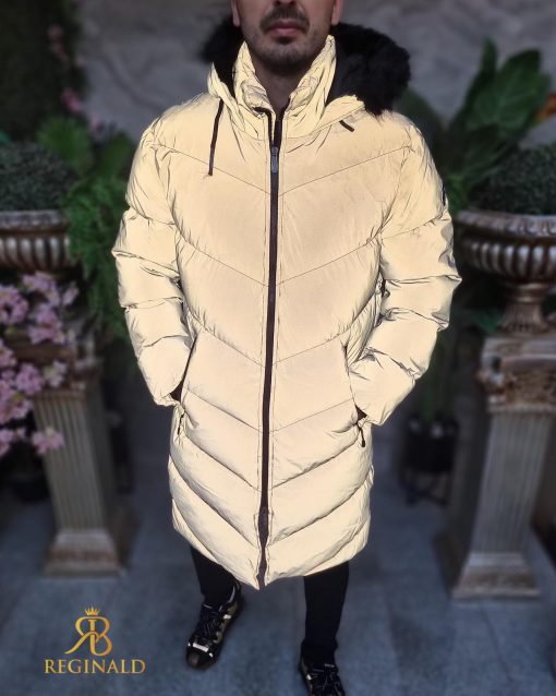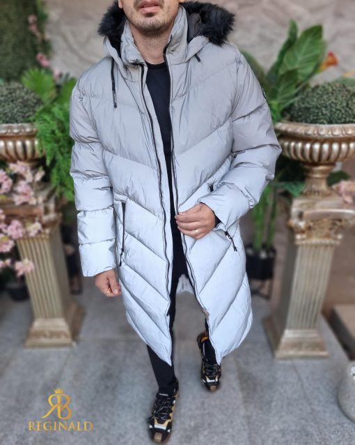 Geaca lunga si groasa pentru barbati, cu gluga, blana detasabila