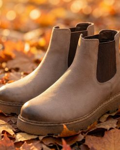 Designul este completat de detaliile unice de pe călcâi – 6 nituri decorative – care adaugă un caracter modern, aparte, fără a afecta eleganța clasică a modelului Chelsea. Elasticul lateral maro facilitează încălțarea rapidă și asigură flexibilitate în mișcare.