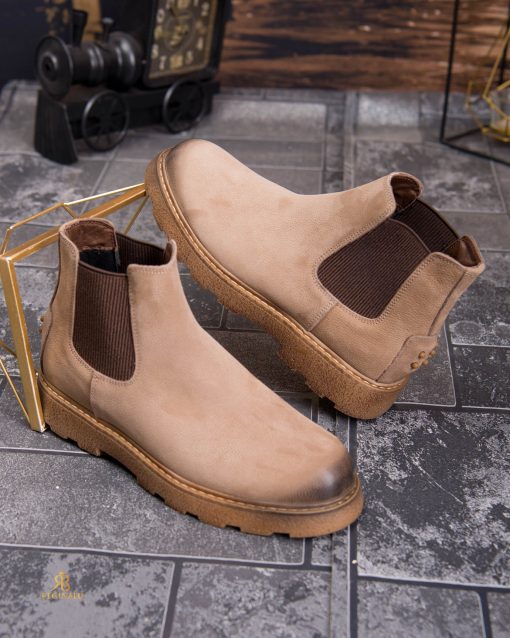 Ghete bărbătești Chelsea din piele naturală – beige sand, robuste și perfecte pentru sezonul rece