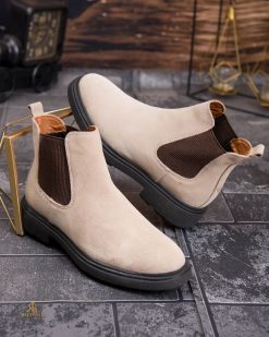 Aceste ghete bărbătești din piele întoarsă (nubuc) în nuanță bej deschis sunt alegerea ideală pentru bărbatul care dorește un stil modern, curat și elegant, fără a renunța la confort și funcționalitate. Pielea naturală fină conferă un aspect premium, iar talpa groasă, neagră, creează un contrast modern și oferă susținere excelentă în orice condiții.