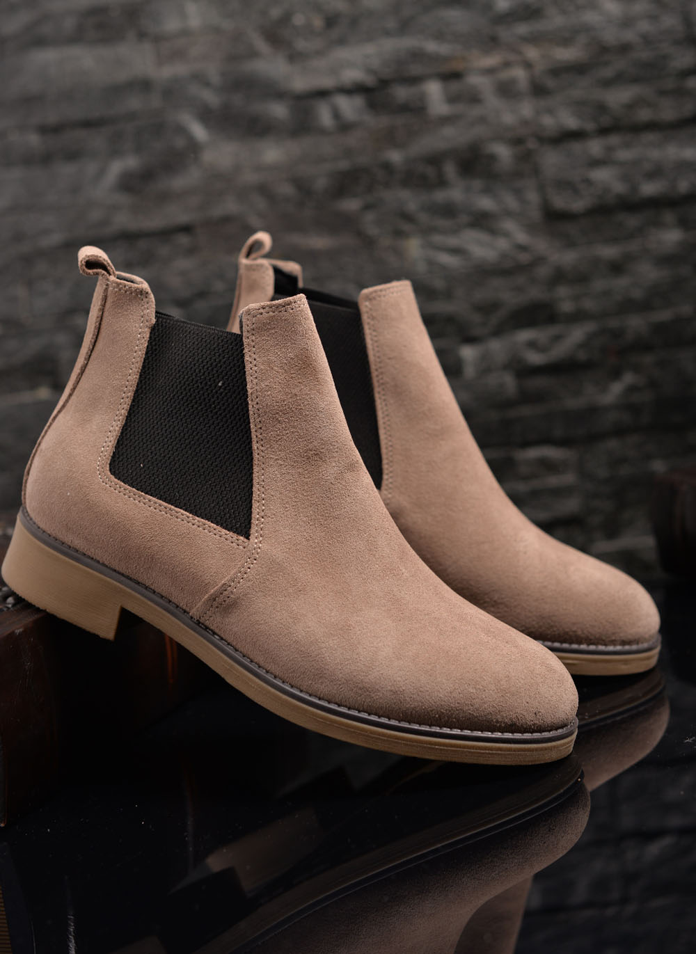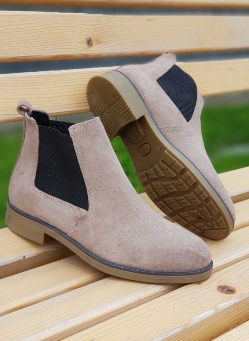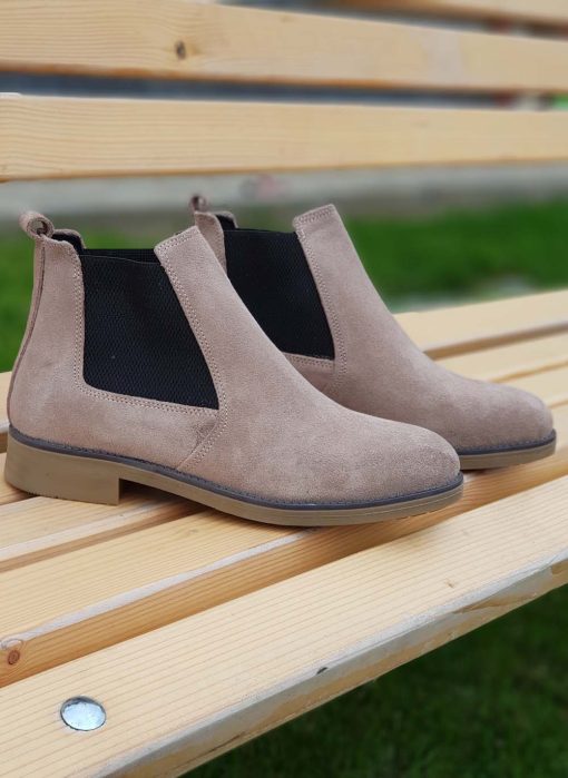 Ghete Chelsea barbatesti bej din piele intoarsa naturala – GH12