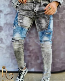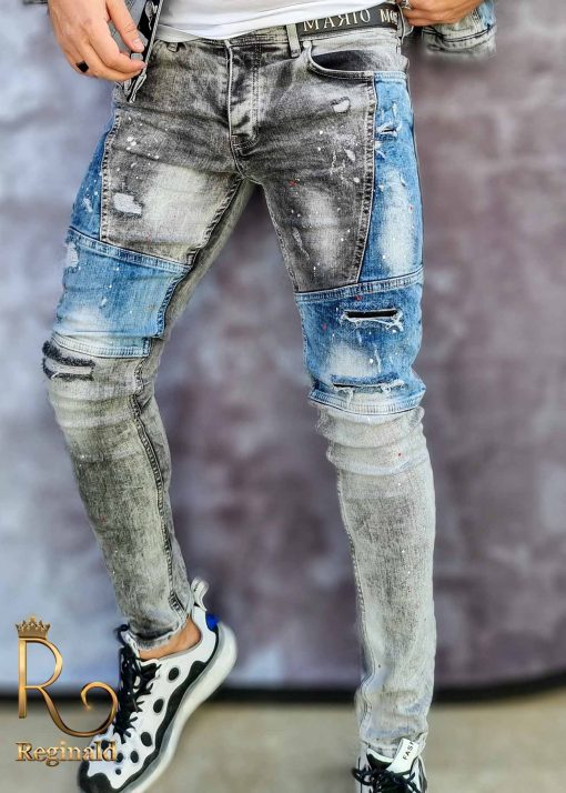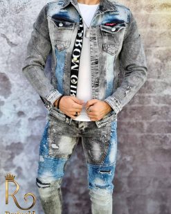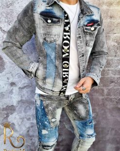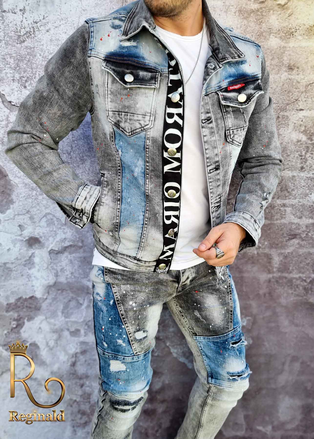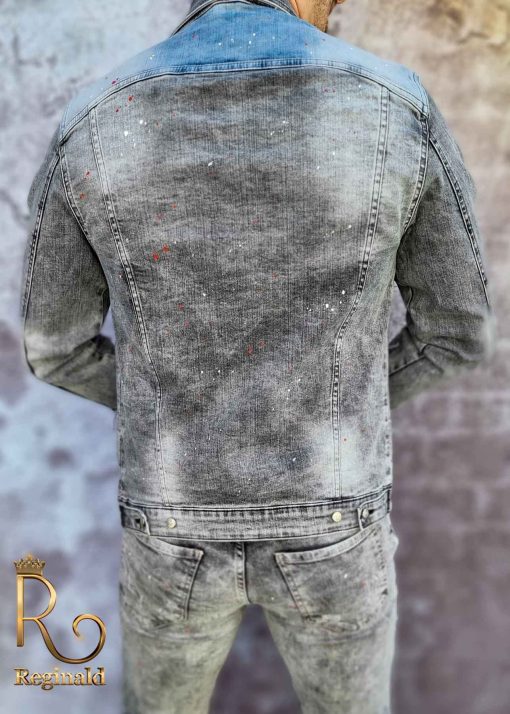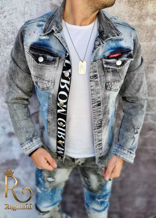 Geaca de blug are croiala slim fit, prindere cu capse metalice, buzunare la piept, bata neagra cu MARIO Morato la capse, rupturi si stropi de vopsea aplicate atat pe fata cat si spe spatele gecii de blug.