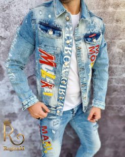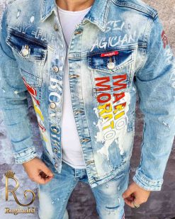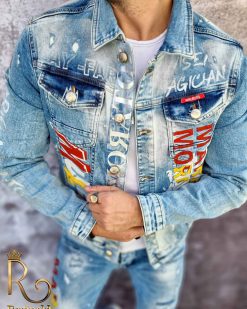 Geaca de blug are croiala slim fit, prindere cu capse metalice, buzunare la piept, imprimeuri scris color atat in partea din fata cat si pe spatele gecii de blug, stropi si rupturi cool.