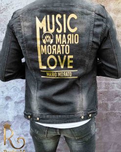 Geaca de blug are croiala slim fit, prindere cu nasturi metalici, buzunare la piept, imprimeuri aurii pe brate, piept si spate.
