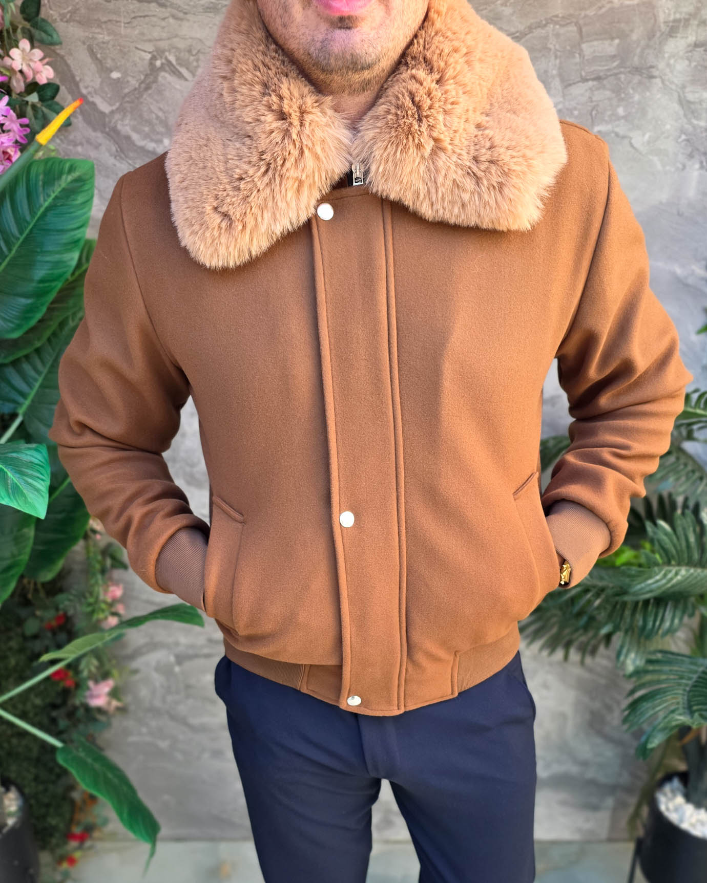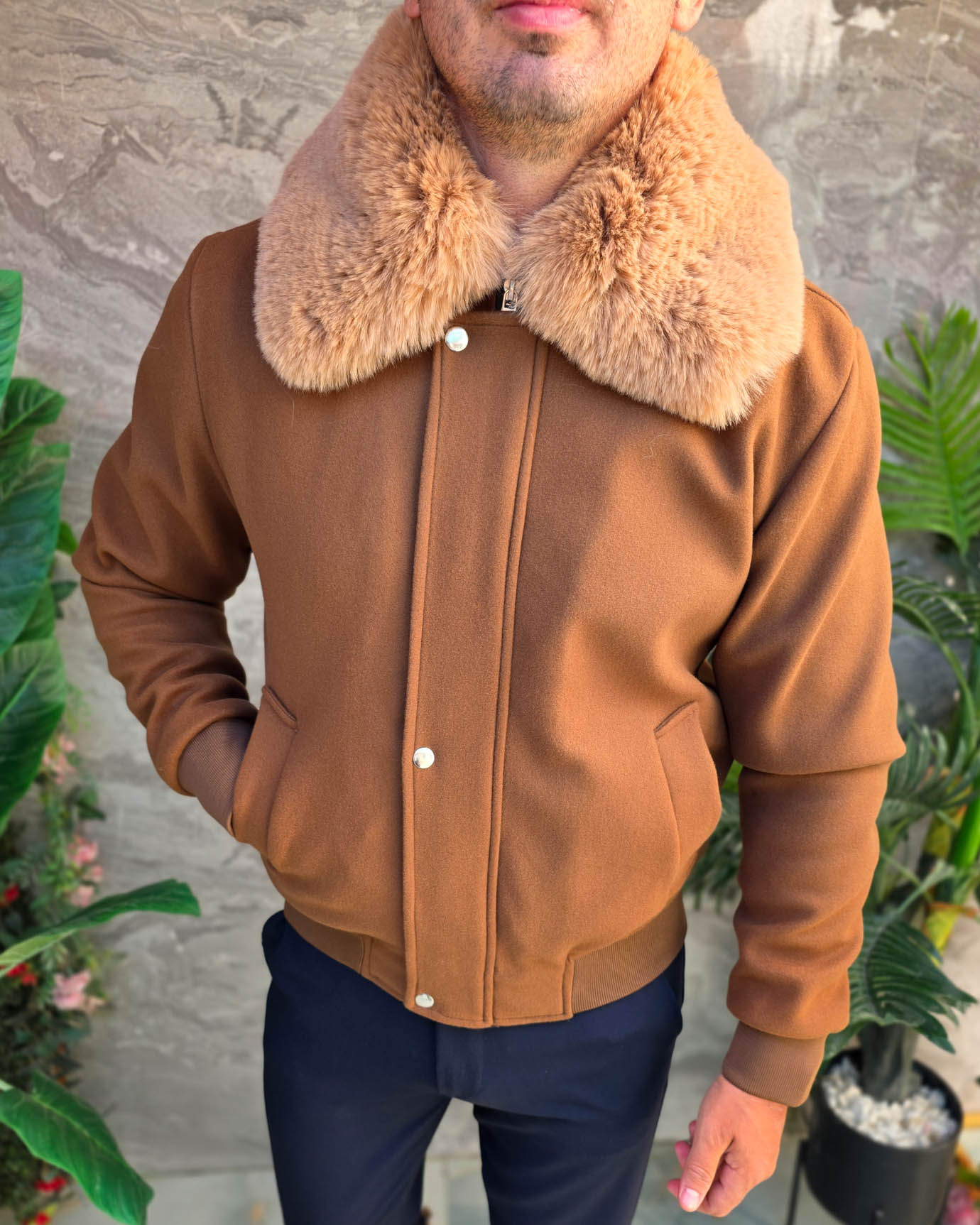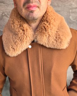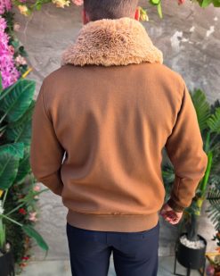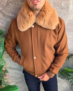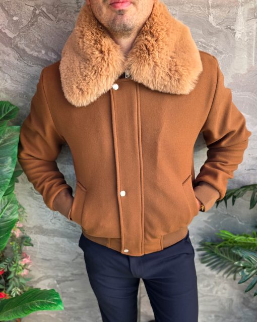 Jacheta de bărbați, maro, guler de blana