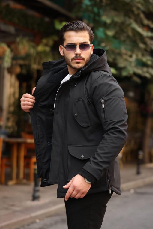 Jacheta de bărbați, neagra, cu gluga- GC905