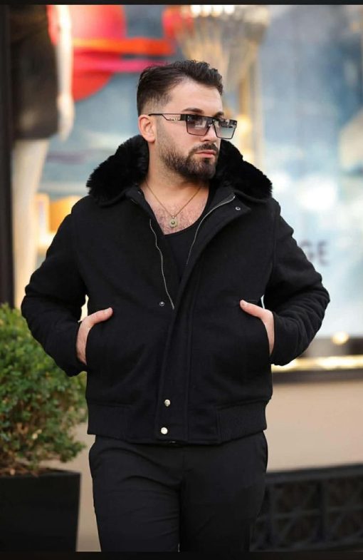 Jacheta de bărbați, neagra, guler de blana