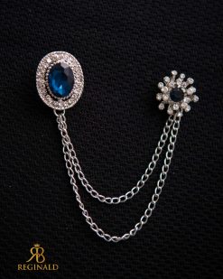 Lanț metalic pentru sacou, Argintiu cu piatra albastra – LT400