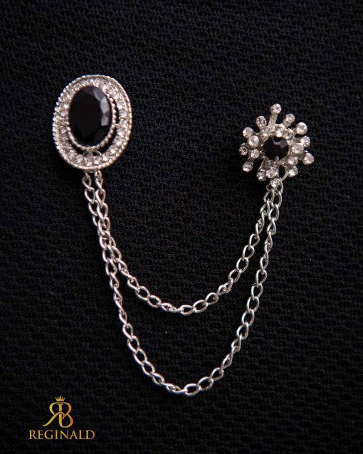 Lanț metalic pentru sacou, Argintiu cu piatra neagra- LT394