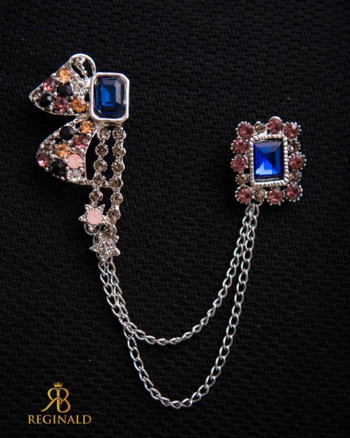 Lanț metalic pentru sacou, Argintiu cu pietre- LT395