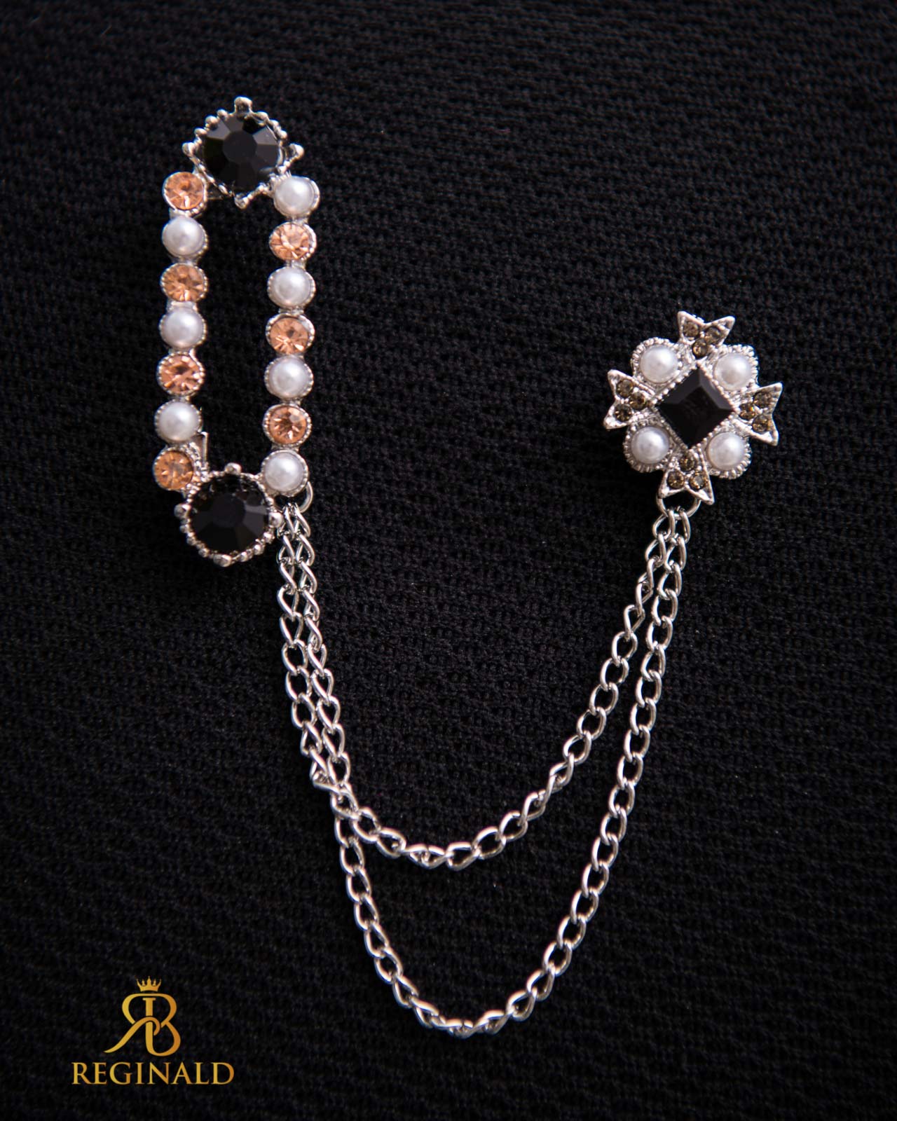 Lanț metalic pentru sacou, Argintiu cu pietre- LT417