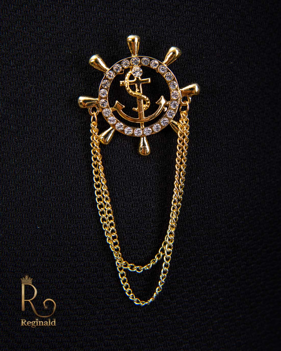 Lanț metalic pentru sacou, Auriu, model cu ancora – LT314