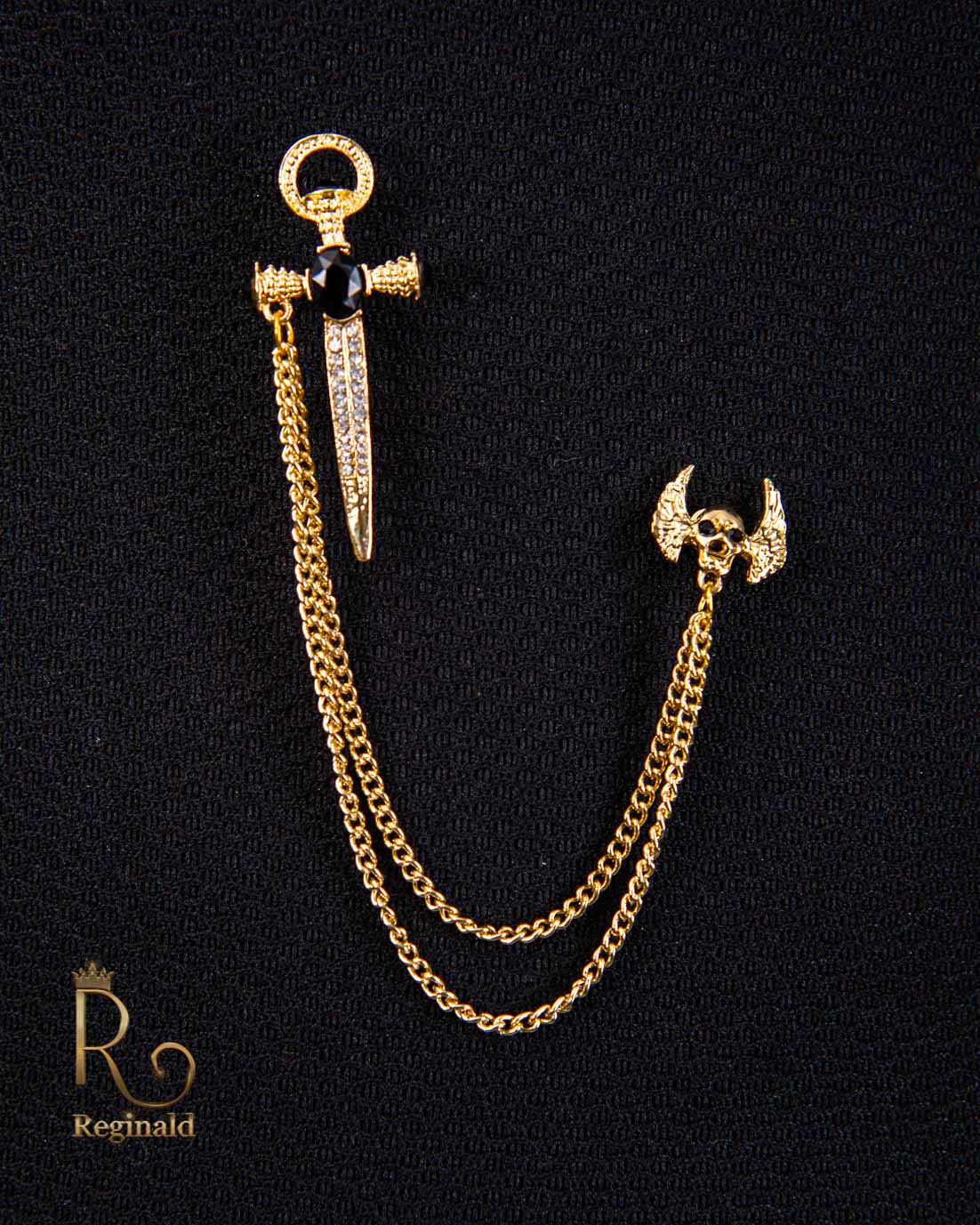 Lanț metalic pentru sacou, Auriu, model sabie cu pietricele – LT325