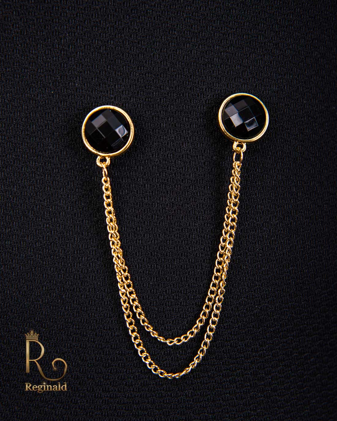 Lanț metalic pentru sacou, Auriu, model sfera neagra – LT317