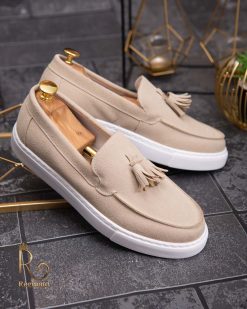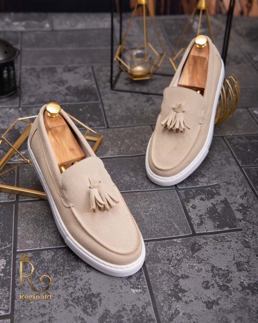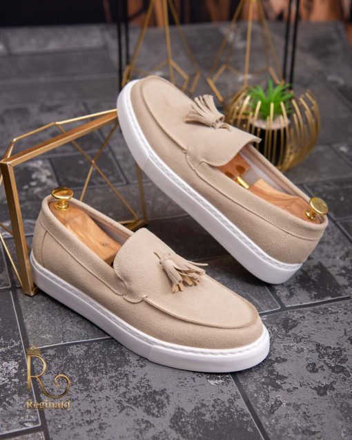 Mocasini casual de bărbați, Bej, Talpa înaltă alba – AD470