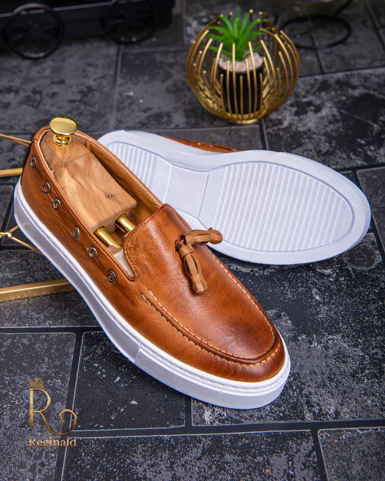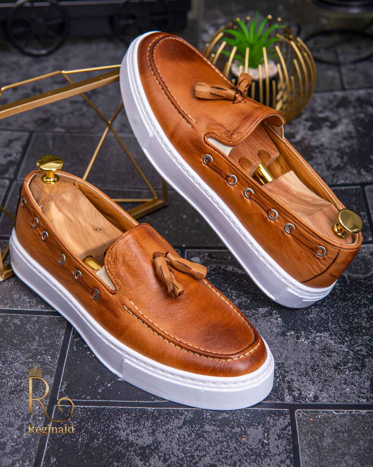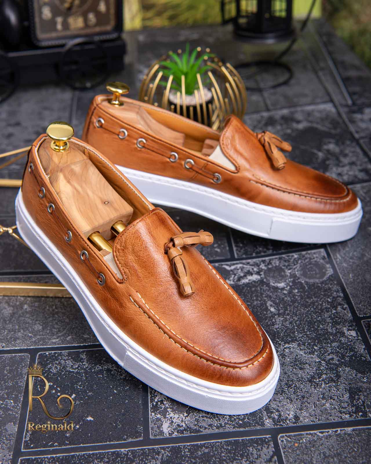 Mocasini casual de barbati, cu talpa inalta, realizati manual din piele naturala, colectia 2021