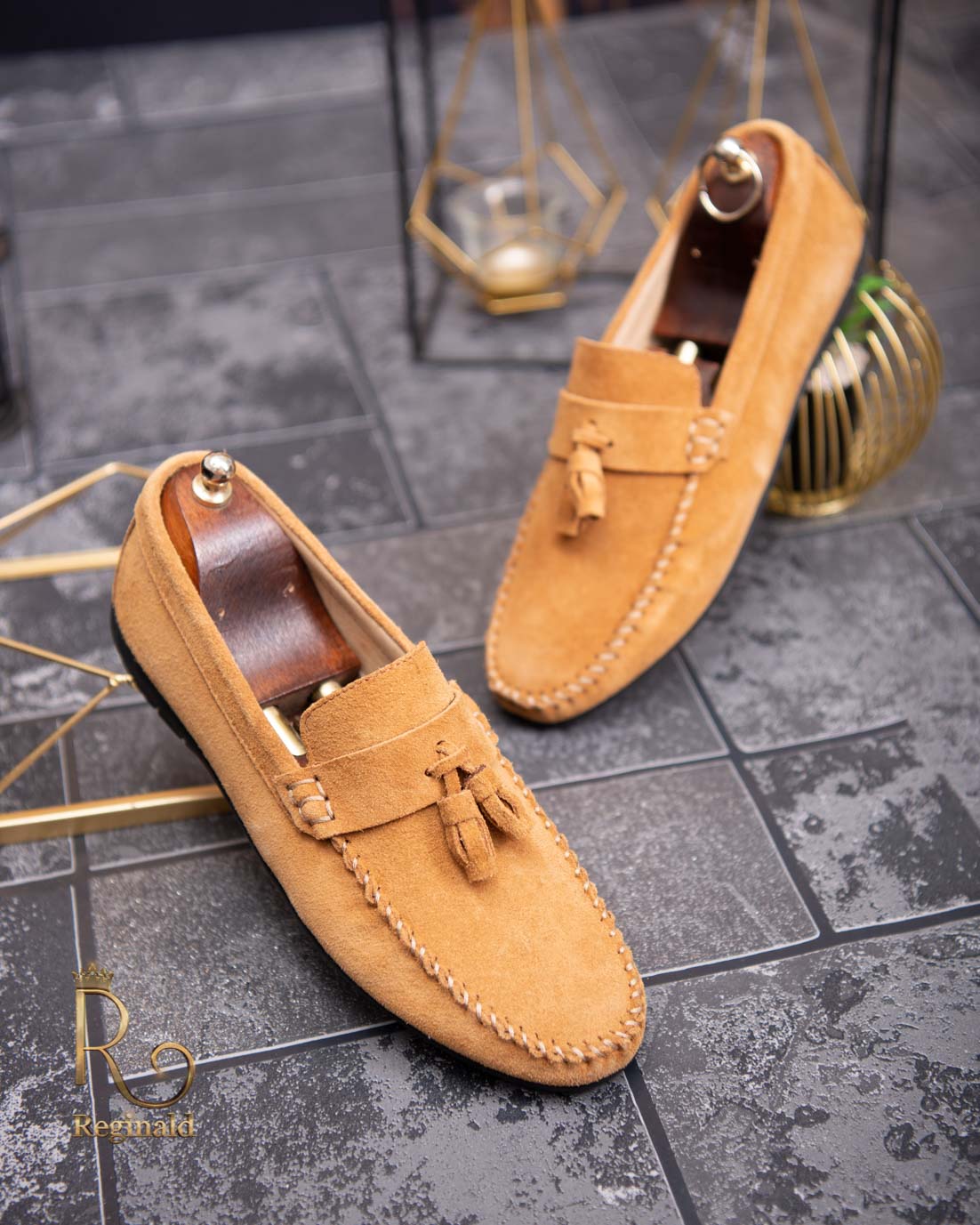 Mocasini casual de bărbați, Piele intoarsa cu ciucuri – AD433