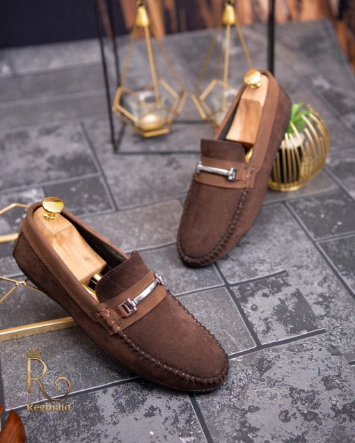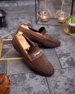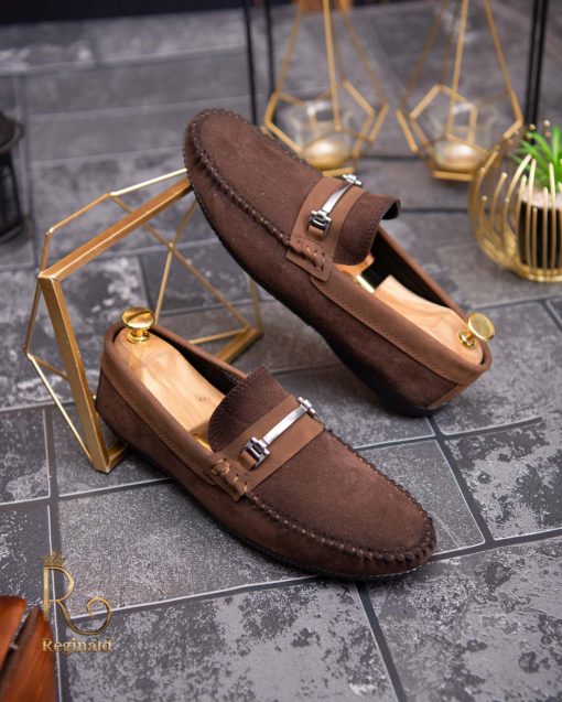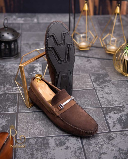 Mocasini casual de bărbați, Piele întoarsă maro – AD429