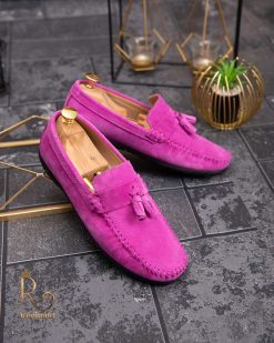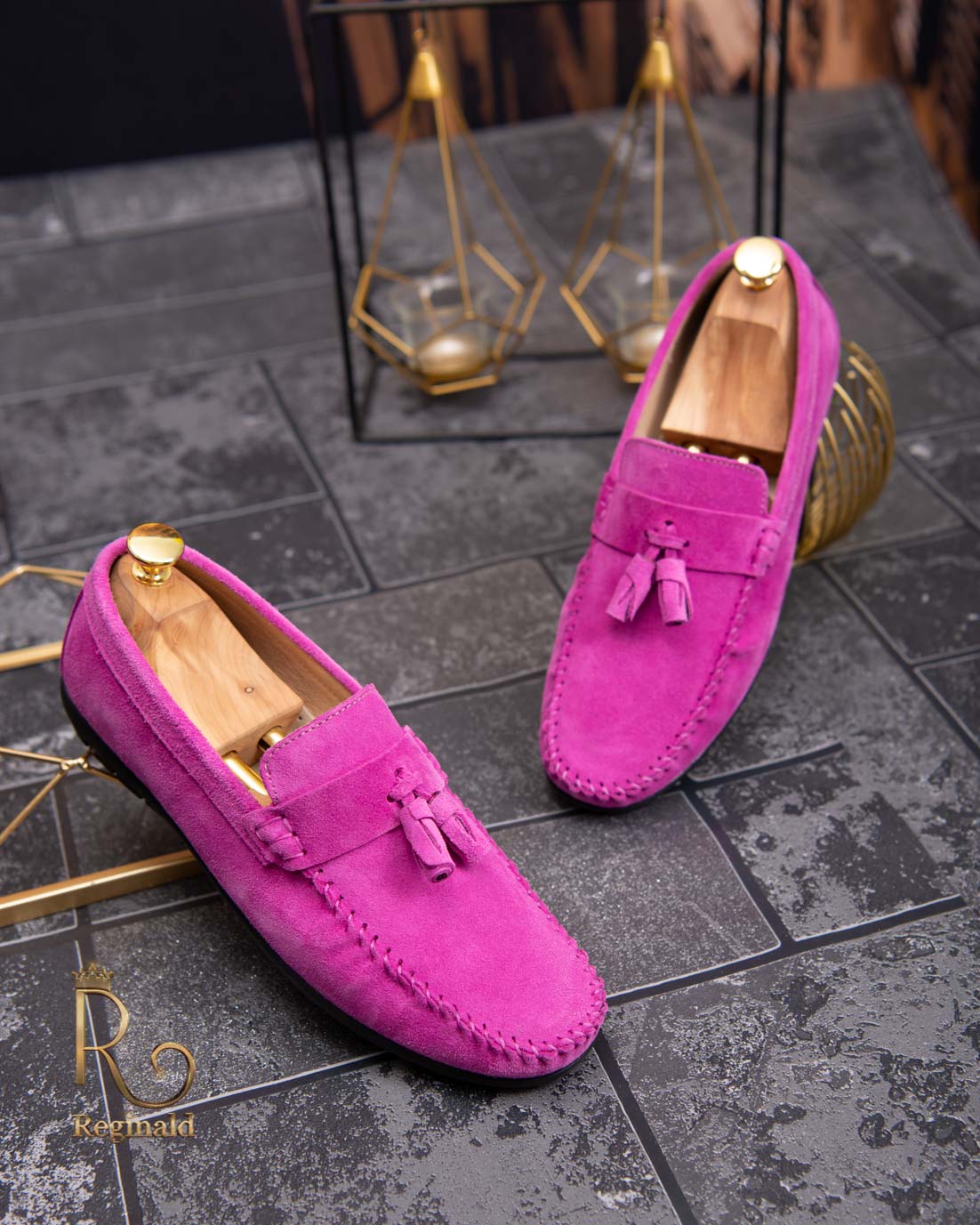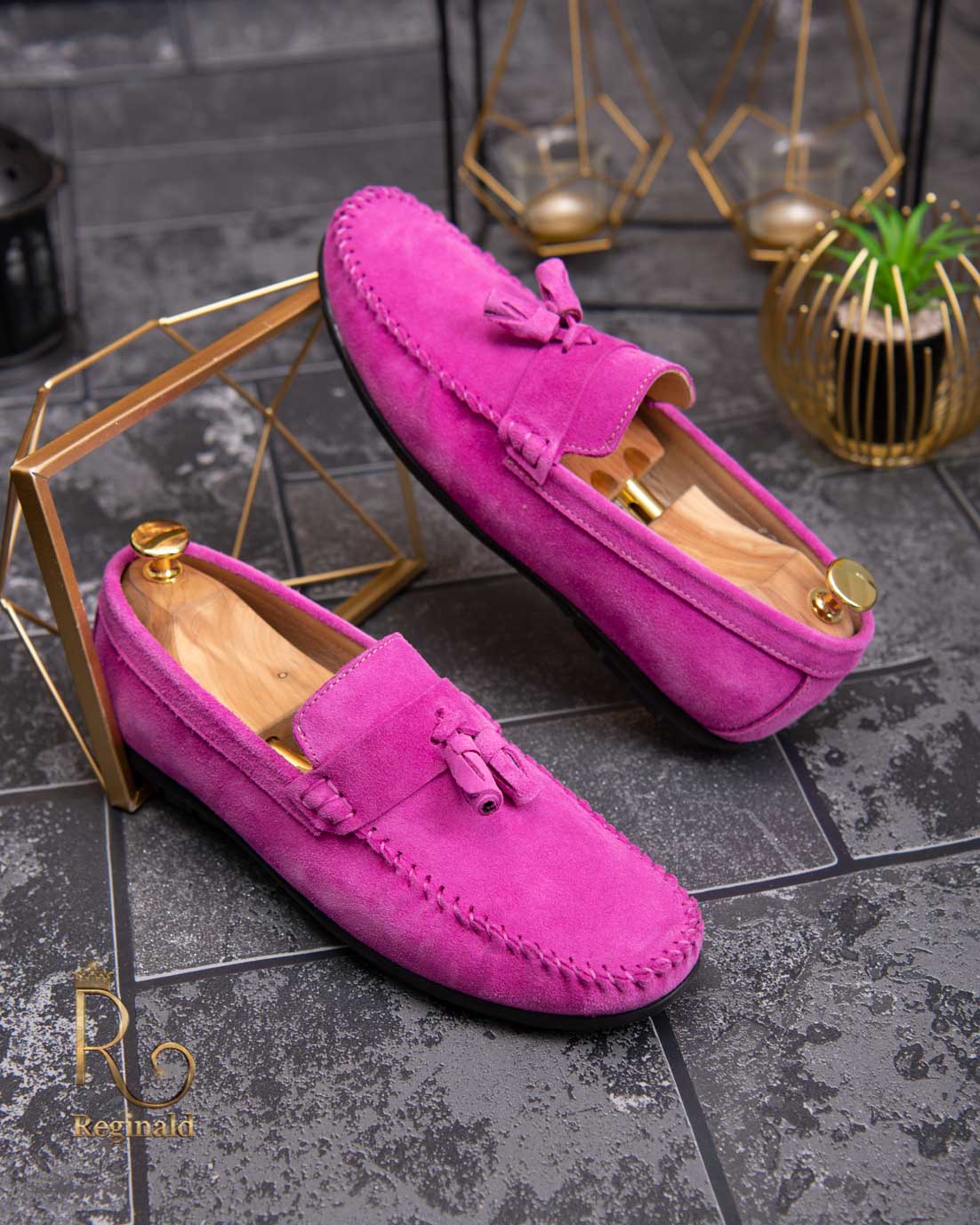 Mocasini casual de bărbați, Piele întoarsă mov, cu ciucuri – AD453