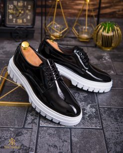 Mocasini de barbati casual, negri cu siret, talpa inalta ultra-usoara – AD857