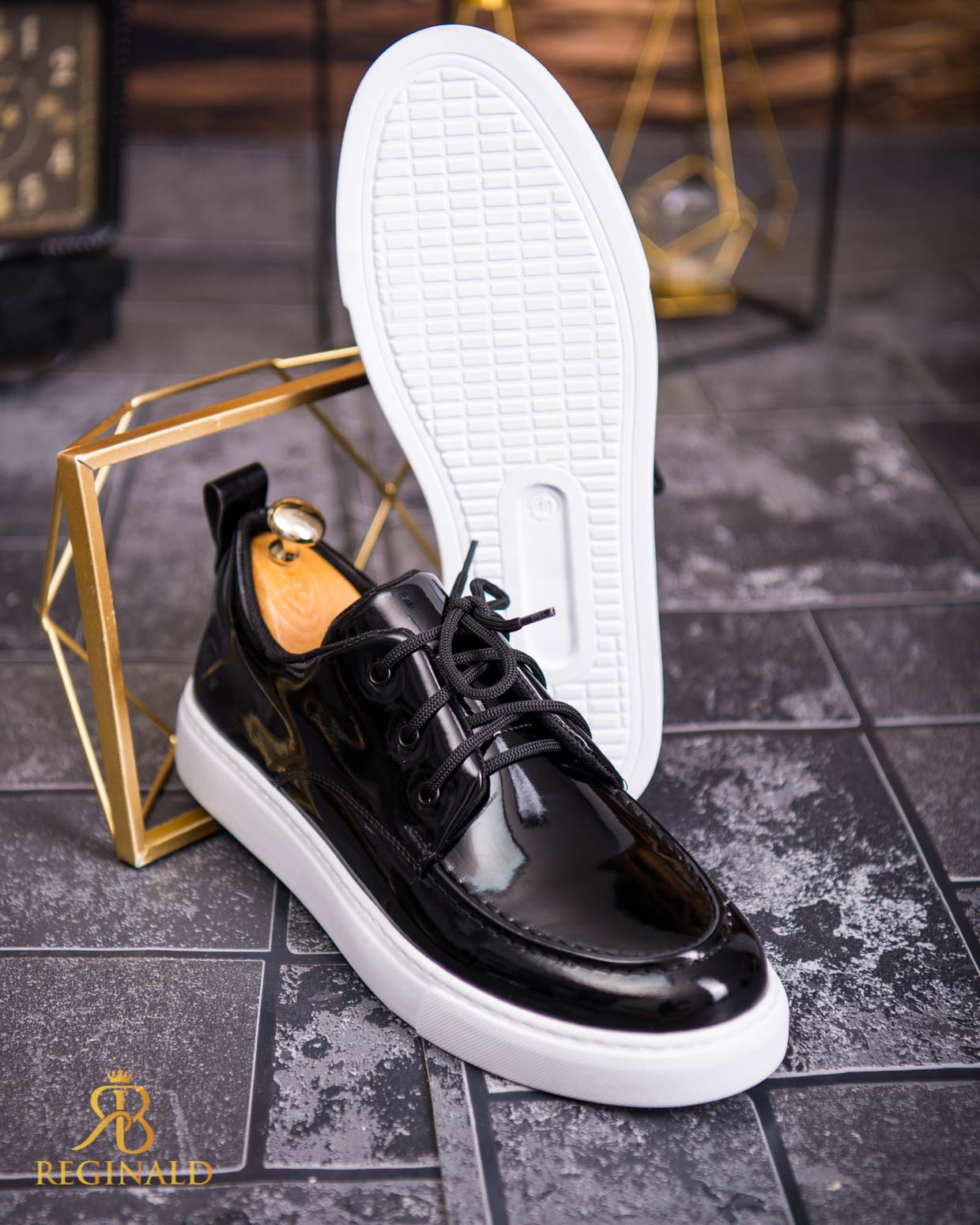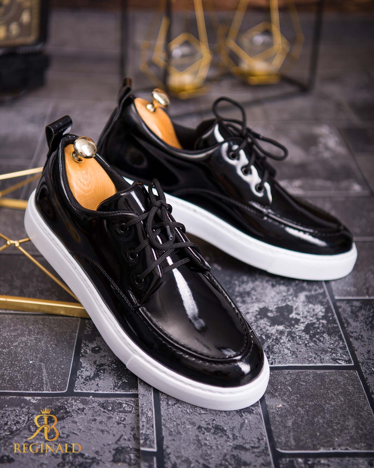 Mocasini de barbati casual, negri lăcuiti cu șiret, talpa inalta ultra-usoara – AD657