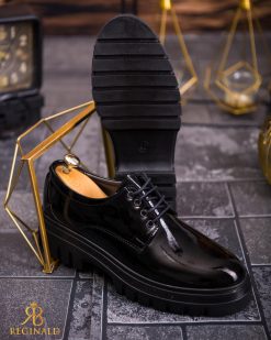 Mocasini de barbati casual, negri lăcuiți, cu șiret, talpa inalta ultra-usoara – AD724