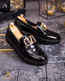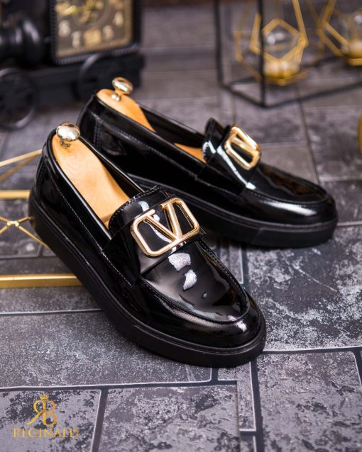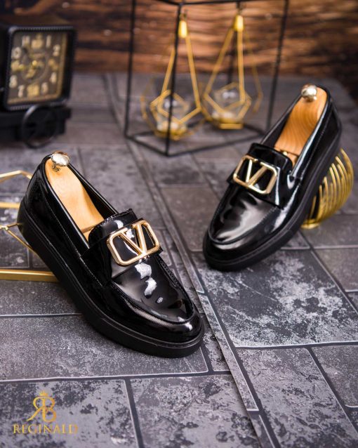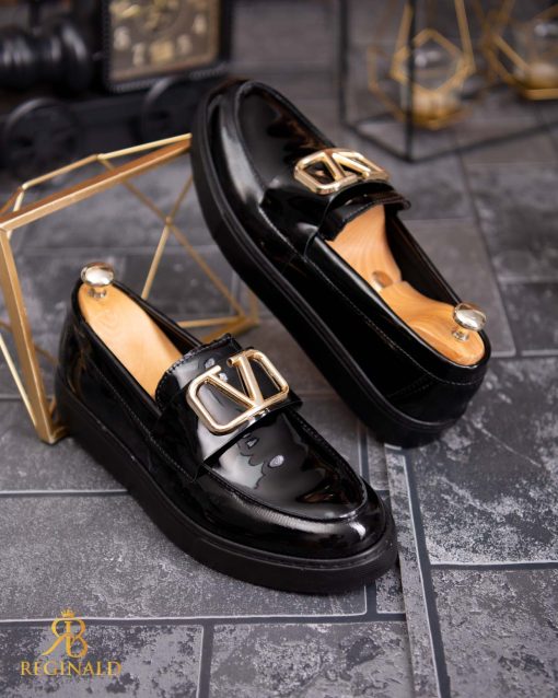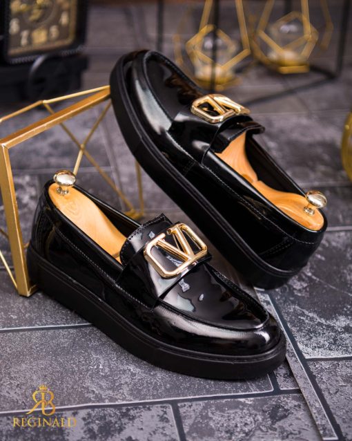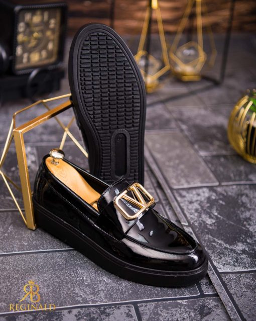 Mocasini de barbati casual, negri lacuiti, talpa inalta ultra-usoara – AD700
