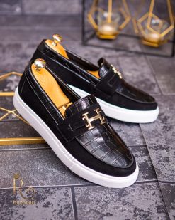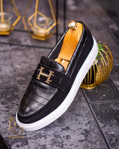 Mocasini de barbati casual, negri, talpa alba inalta ultra-usoara – AD570