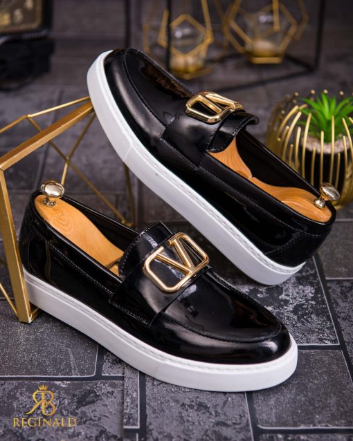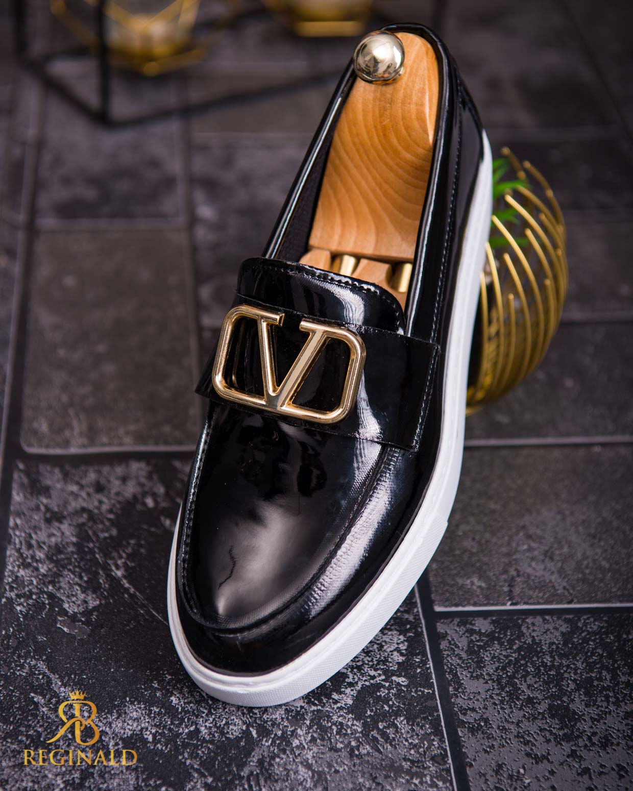 Mocasini de barbati casual, negri, talpa alba ultra-usoara – AD707