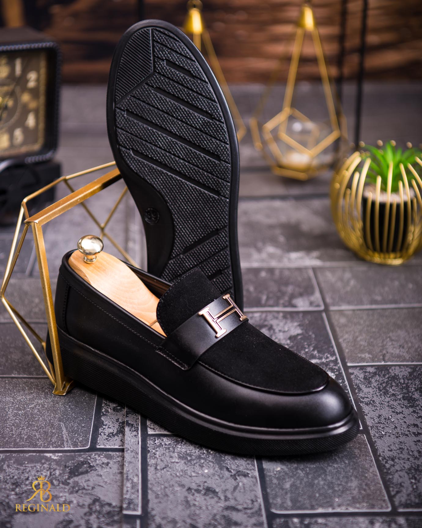 Mocasini de barbati casual, negru, talpa inalta ultra-usoara – AD755