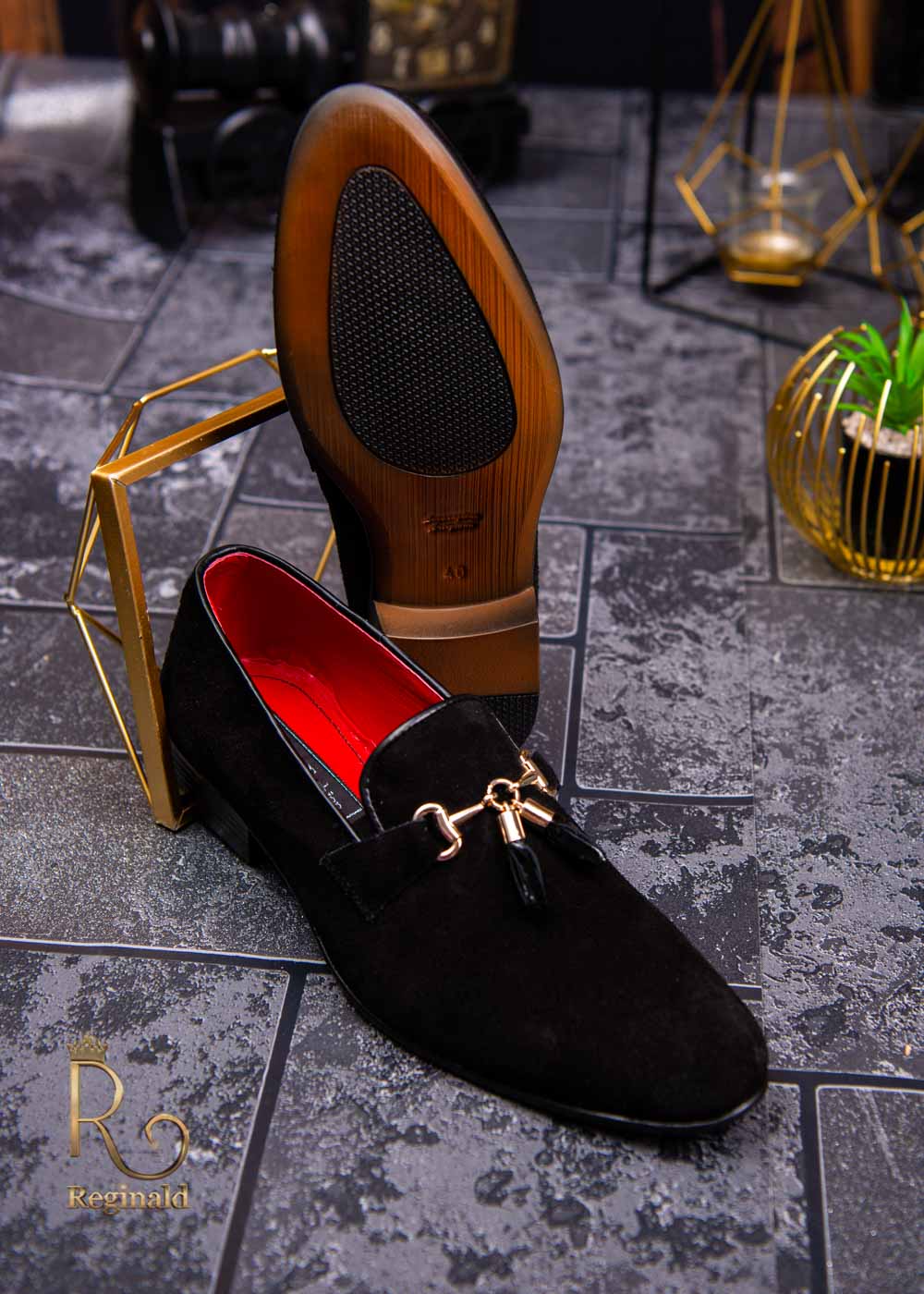Mocasini / Loafers din catifea si piele cu ciucuri – P1222